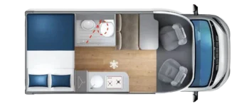 Giottiline Compact C60 – компактен за тесните улици и напълно оборудван! С обща ширина само от 2,15 метра, може да разполагате голям хладилник, просторен гараж, баня “VARIO” с отделен душ, двоен гардероб и вградена задна стълба. Насладете се на комфорта и гъвкавостта в тесните улици заедно с Giottiline Compact C60! Научете повече за този Giottilice Compact C60